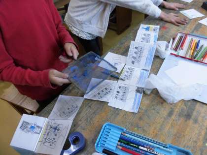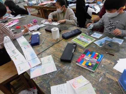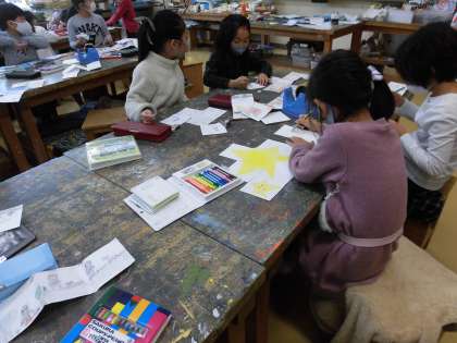 今日は、色合いに「ぼかし」を付けるため、コンテを使って描いている子どももいました。