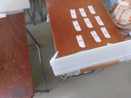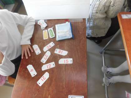 先生の言った「九九」の答えカードを かるたみたいに、とっていました。