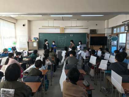 6年1組の出し物はお化け屋敷。今日は実行委員の4人が、自分たちで考えたプランをみんなに説明し、役割分担を決めました。こわ〜いこわ〜いお化け屋敷を目指してみんな張り切ってます。