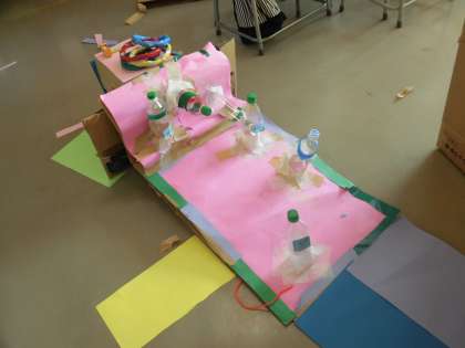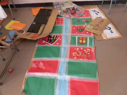 2組の山フェスの準備の様子です。教室に、大きなおもちゃが出来上がってきました。