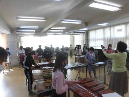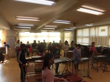 今日は、5年生の「アメリカンシンフォニー」の力強いリズムが聞こえてきました。甲子園の応援でも使われている曲ですね。
