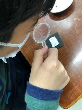 まず、「フウセンカズラ」の種を虫眼鏡で観察してみました!