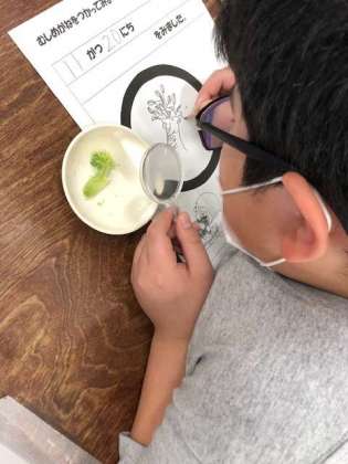 その後は、自分のてのひら、白い布、青い布、ブロッコリーを拡大してじっくりと見てみましたヨ!