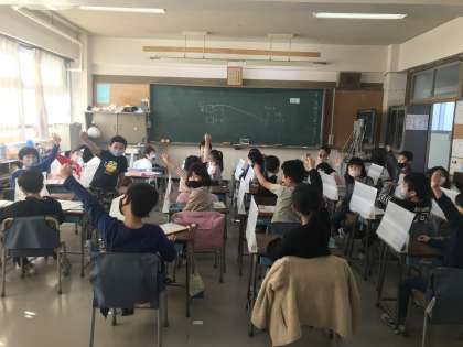二年生は徒競走と、「魚魚っちゃ」を行います。今日の5時間目に、明日のスポーツ祭に向けての意気込みを発表してもらいました。