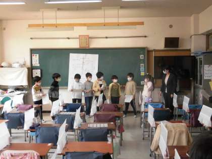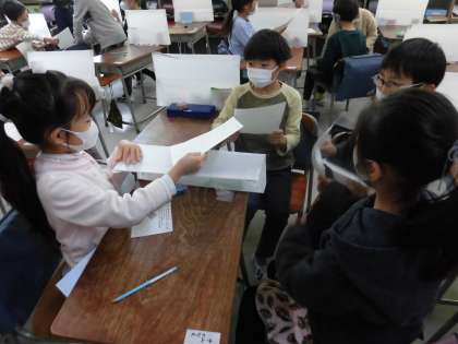 まずは、自分の考えをプリントに書き、友達と意見交換をしました。