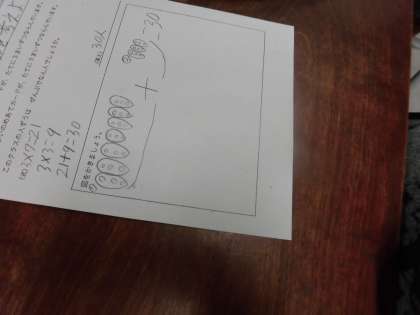 黒板に提示された問題を見て、立式を考えました。