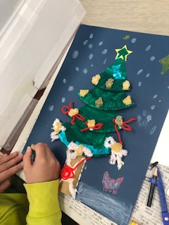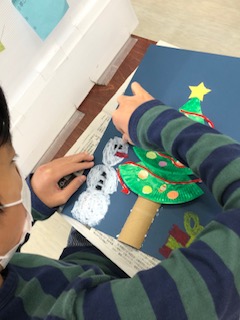 クリスマスらしい絵を考えて黙々と頑張っていましたヨ!