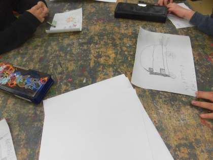今日は、図工室で、不思議な乗り物を考えていました。