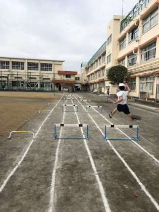 6年生は、これまでの練習を生かして、いよいよ本物のハードルを使って走りました!