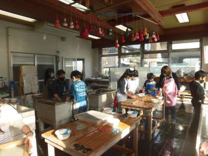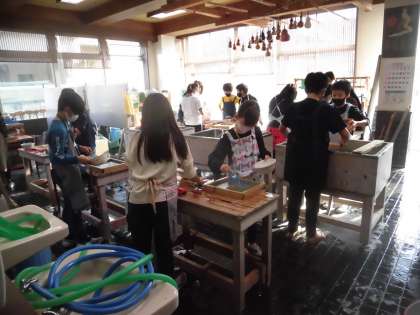 今日は、伝統工芸室で 4年生が 紙漉きをしていました。