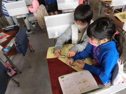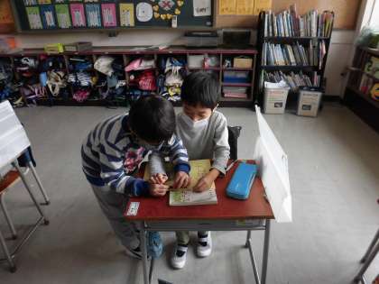 友達を助け合う姿。色々なところにミニ先生の登場です。