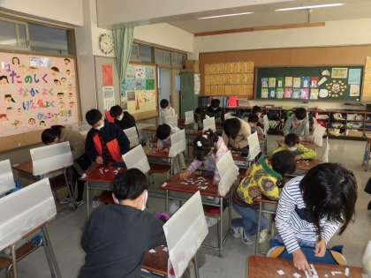自分のパズルを行った後には、手を消毒して友達のパズルも