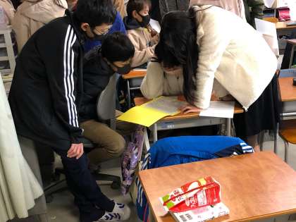 下級生が楽しめる遊びは何か真剣に考える子たち。