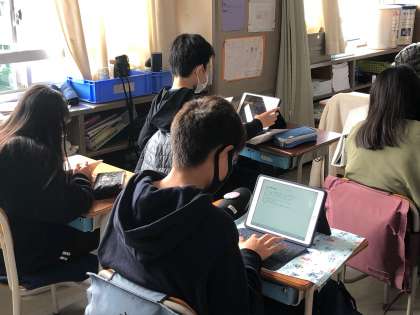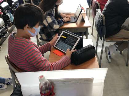 下書きを原稿用紙で書き上げ、推敲が終わった子たちからタブレットで清書開始です!