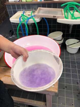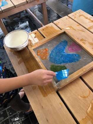 色と形を考えて、そ〜っと紙の元を流していきます!