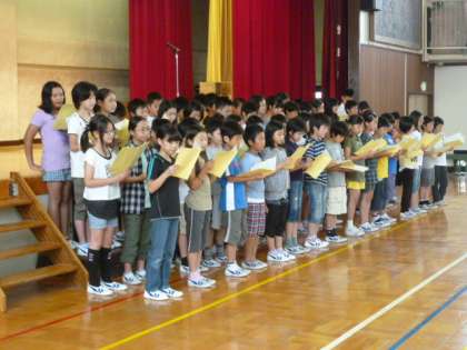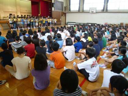 全員で、または分担して、これまでの学習と練習の成果を上手にかつ調和を大切に発表しました。他学年の子どもたちも、真剣に聞き入り、大きな拍手を送っていました。