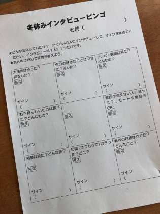 冬休みの出来事を振り返って、インタビューしていくゲームをしました。