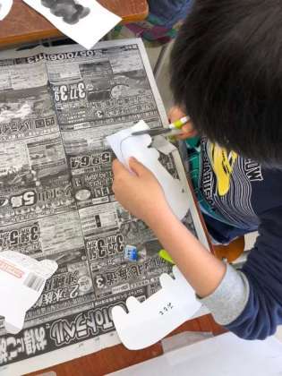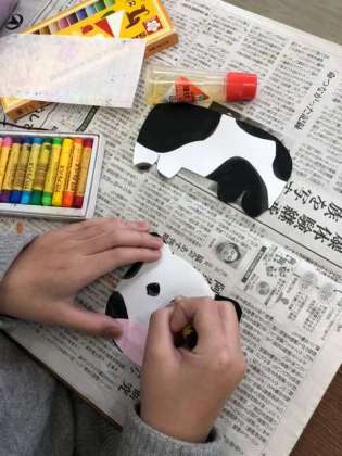先週描いた牛模様を、牛の形に切り取っていよいよ作品に仕上がります。
