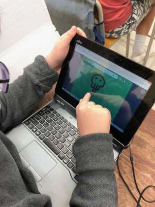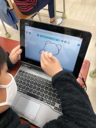 2学期にタブレットで「ロイロノート」を使って取り組んだお話づくりですが、今度は1・2年生に発表するお話づくりにチャレンジです。
