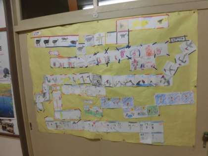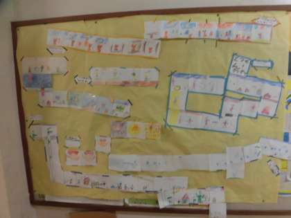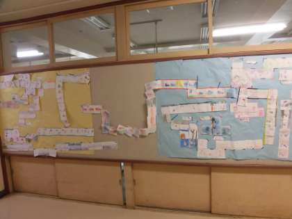 2学期に完成した図工の作品「つづきえ どんどん」が