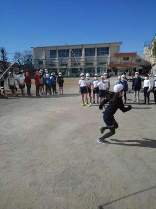 3年生は、「スポーツ祭、春」に向けて、大縄跳びの練習をしています。