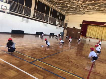 2枚目は、体育係さんが準備体操デビューをしたところです。