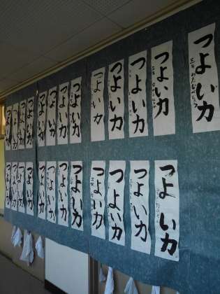 3年生、「つよい力」。全員の作品を掲示すると、なかなか圧巻です。毛筆が得意な子、苦手な子、いますが、みんな、精一杯書きました。