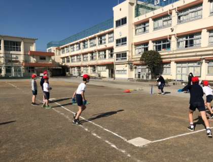 今日の体育はティーボール。ベースボール型の運動です。