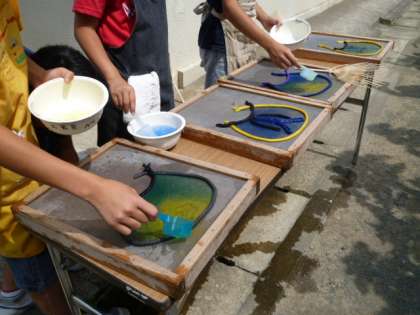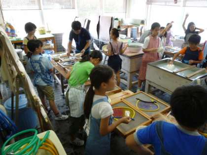夏季交流の際、毎年、伝統工芸室を利用して制作している伝統の作品づくりです。