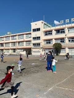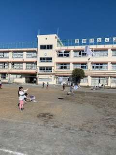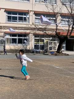 ふと校庭を見ると1年生が凧上げを楽しんでいました。
