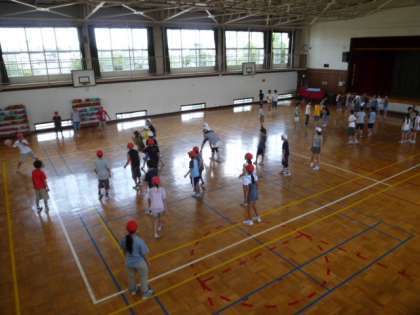 今日の中休みは、5年生が体育館で、1年生が屋上で、担任の先生が付き添って過ごしました。そのほか、図書室や各教室を使って仲よく過ごしていました。暑さも厳しくなり涼しい教室で過ごす姿も見られました。
