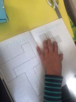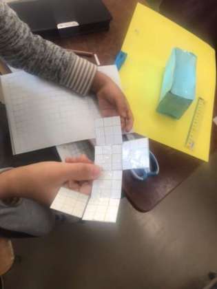 算数では、「はこの形」を勉強しています。今回は、面からはこを作る活動を行いました。