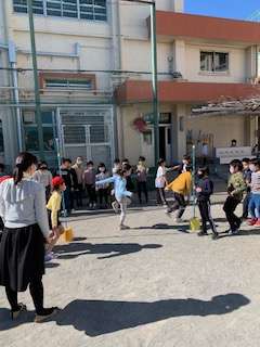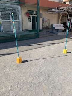 そこでちょっと工夫した練習道具登場。片足で縄を跳ぶ練習をするためにゴムを張りました。止まっているから焦らずに足の練習だけをしっかりできます。2-2のみんなが練習を楽しんでいました。