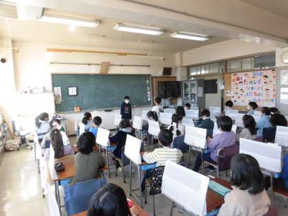 聞いている児童は、発表を聞いて質問をします。