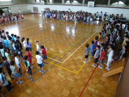 7月13日(水)の音楽集会では、“きれいな歌声を響かせよう”というめあてで、