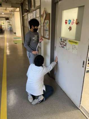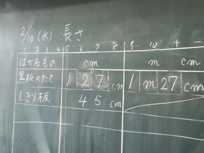 黒板やしきり板、教室のドアなど、協力し合って長さを測っていましたヨ!