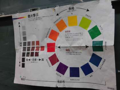 まずは、黒板で色彩についての学習。