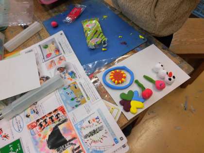 その後、カラー粘土をちぎったり、混ぜたりして