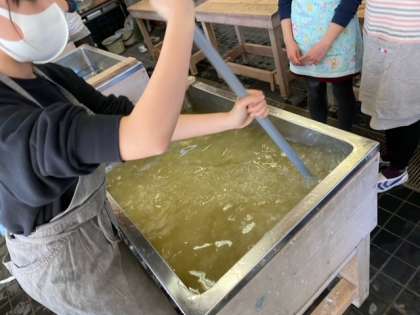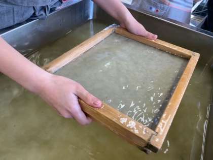 今日の6時間目に、流し漉きの体験をしました。