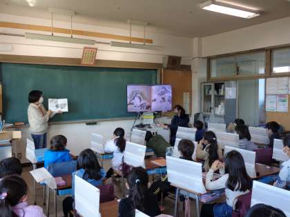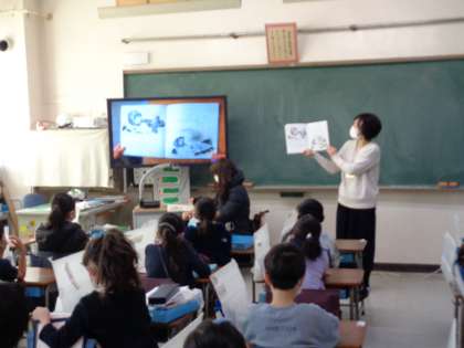 お話が始まると、1組も2組の児童も、絵本の