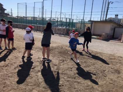 体育の時間に、5年生と長縄練習をしました。五年生のおかげで、とても上達した二年生!