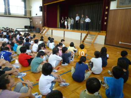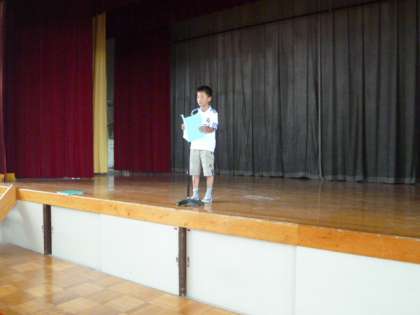 42日間の夏休みが「よい夏休みだった!」と思えるように、「めあてをもって、計画的に、規則正しく毎日を過ごしましょう」「暑さに負けない健康な心と体をつくりましょう」、また「「節電」のために、家庭でできることを一緒に考えて取り組みましょう」との話をしました。