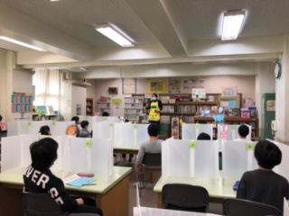 図書館司書の先生が、仲よし学級のみんなにエプロンシアターで「さるかにばなし」を聞かせてくれました!