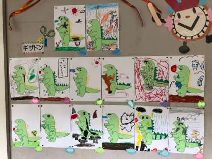仲よし学級の廊下に、たくさんのギザドンがいます!