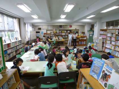 雨天のため、水泳教室は中止となりましたが、たくさんの子どもたちが図書室を利用し、読書を楽しんでいました。今日の利用者は93名で、大変盛況でした。