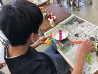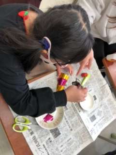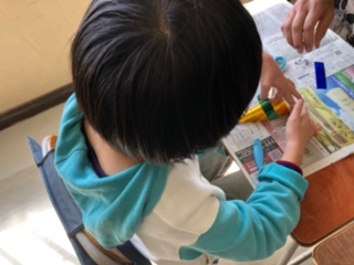 いくつかの種類の中から好きな色テープを選んで、丁寧に貼り付けています!