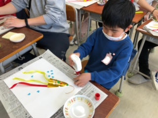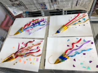 もうすぐ6年生が卒業です。そのお祝いの気持ちを込めて、平面にクラッカーを作ってみました!