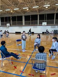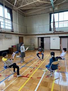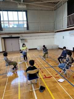 広い体育館でソーシャルディスタンスを保ちながらのビブリオバトルです。