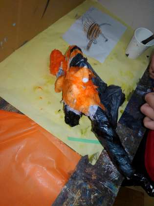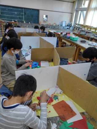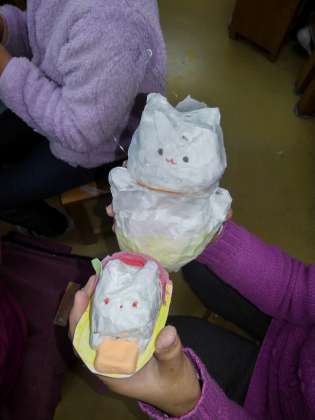 図工「ガーディアン」を製作中。ガーディアンとは、「悩みを聞いてくれる友だち」だそうです。すてきな友だちが、できたね。
