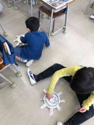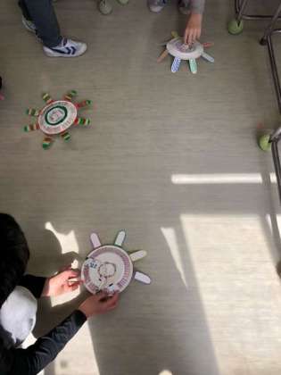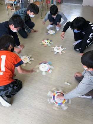 作った後は、みんなでお花ごまを回転させて遊びました!